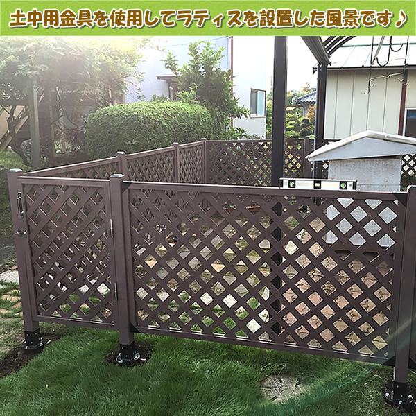 ↓「こちらは、土中用ポール固定金具を土の中にすべて埋め込んでラティスを設置したお写真です♪」