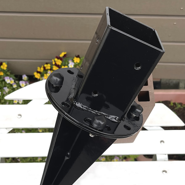 ↓「土の上に支柱を設置するための、土中用ポスト固定金具です。