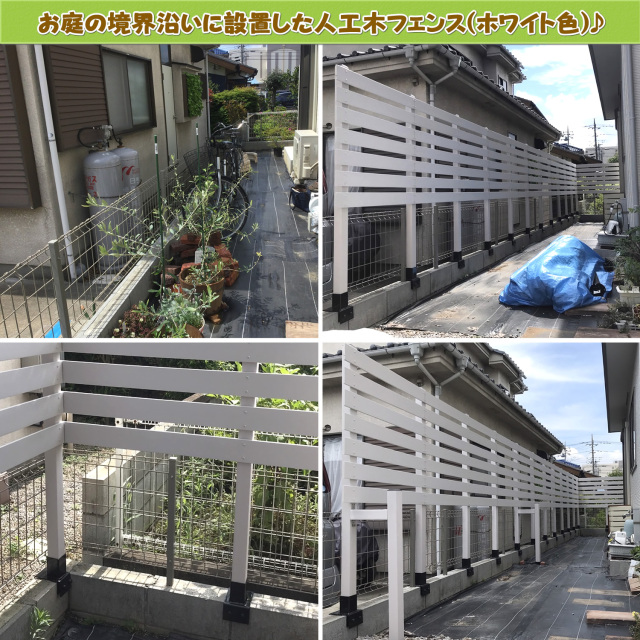 ブロックを活用した白塗装の人工木ラティスの設置例はこちら