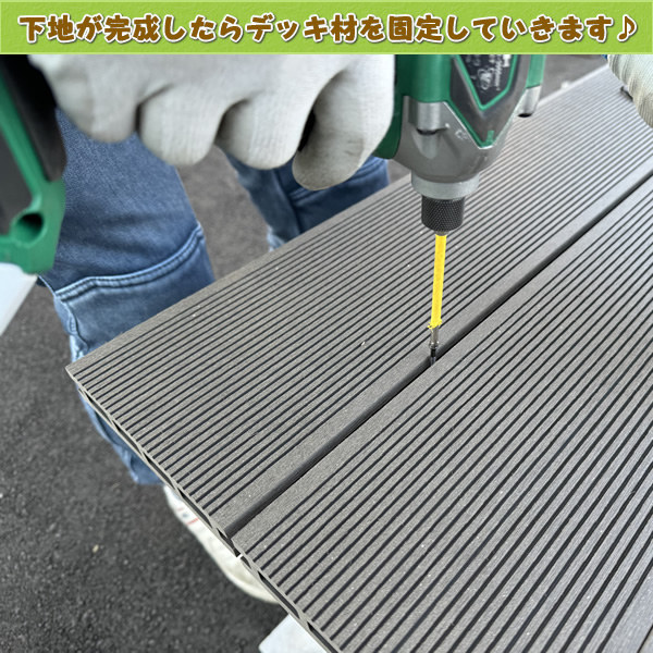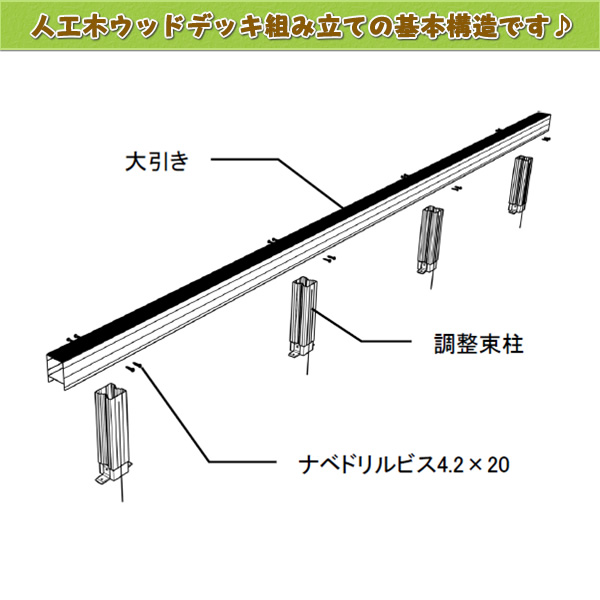 『続いて大引きと束柱をドリルビスでしっかりと固定します。