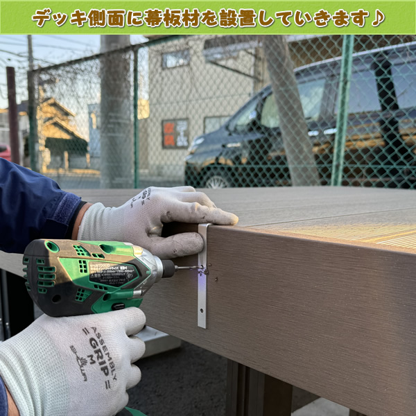 『下穴を開けた場所にビスを打ち込んだら、幕板の設置は完了です。