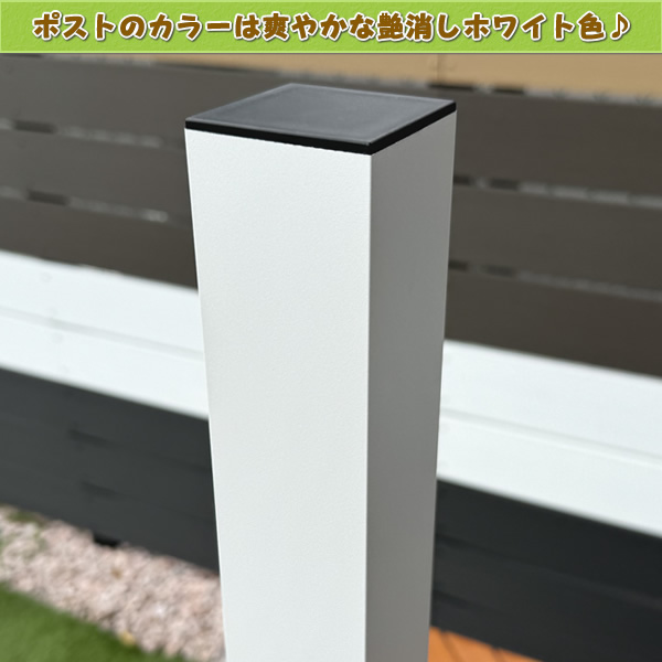 エコウッドアルミ製60角ポスト(支柱)がリニューアルしました! 厚みは強度を重視した2.1mm厚 / 艶消しホワイト色(樹脂キャップ付) 【2100mm×60mm×60mm】