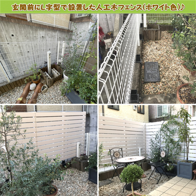 ブロックを活用した白塗装の人工木ラティスの設置例はこちら