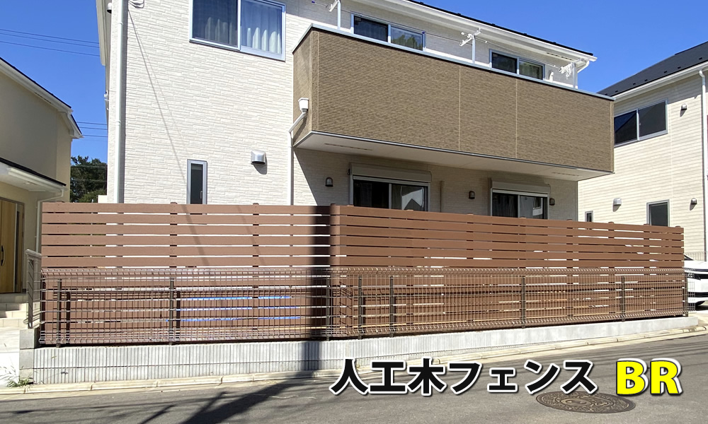 ↓「下記お写真は、ブラウン色の人工木フェンスポストにエコウッド人工木材を設置した風景です♪」