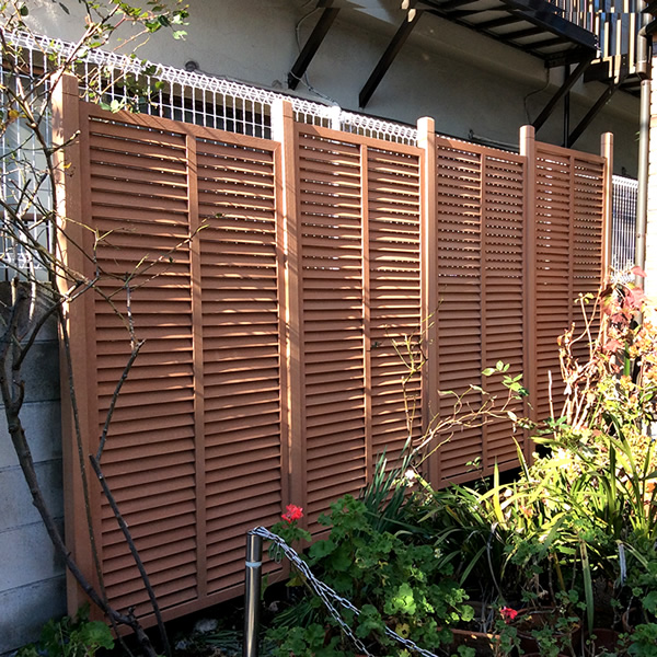 人工木ルーバーラティス専用の人工木60角ポスト2100サイズです。カラーは程よい明るさのココアベージュ色とシックなダークブラウン色♪ 人口木ルーバーと同色で合わせてお使いいただくことができます。