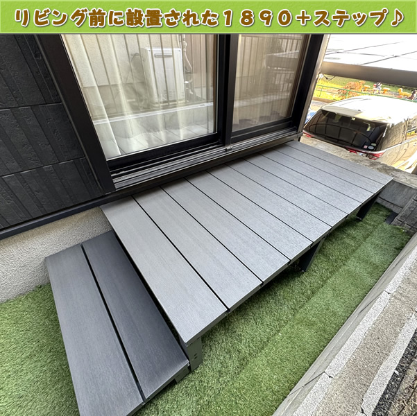 ↓『こちらは掃き出し窓の前にセットされたお客様設置写真です♪ 人工木デッキ1890と1段ステップを活用されています♪』