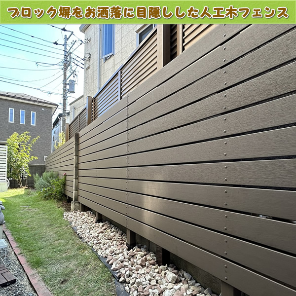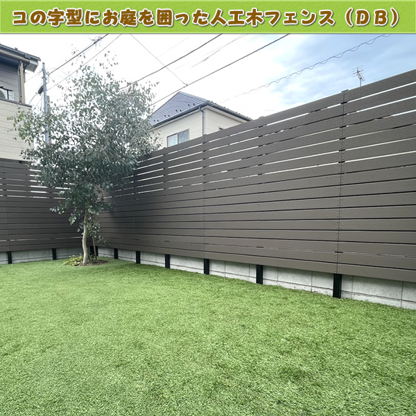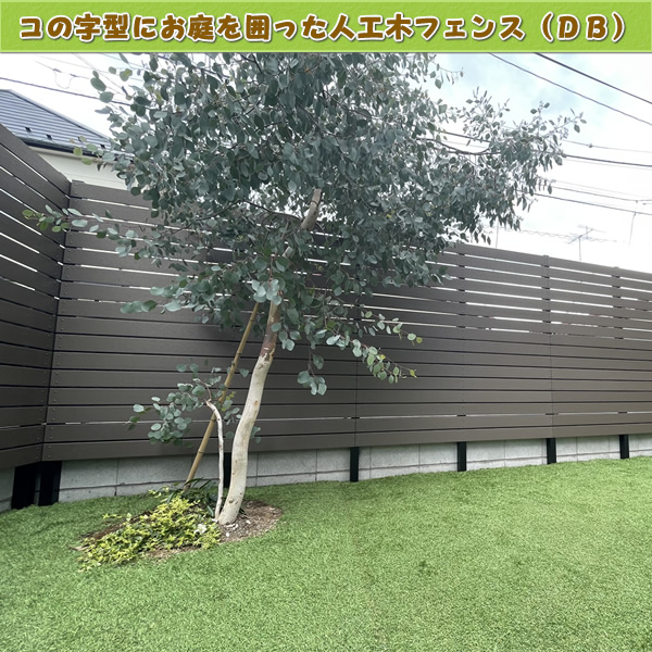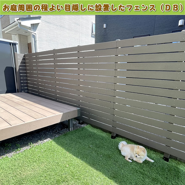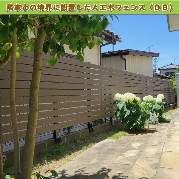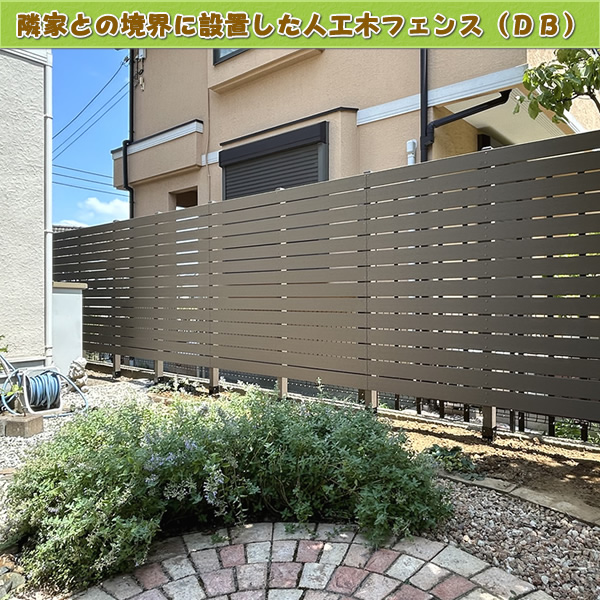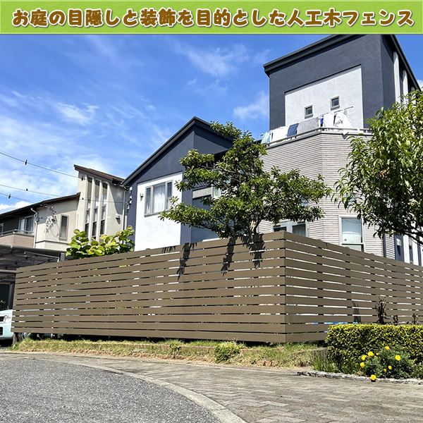 「こちらはお庭境界に沿った形で、目隠しと装飾を目的とした人工木フェンス(ダークブラウン色)設置例です♪」
