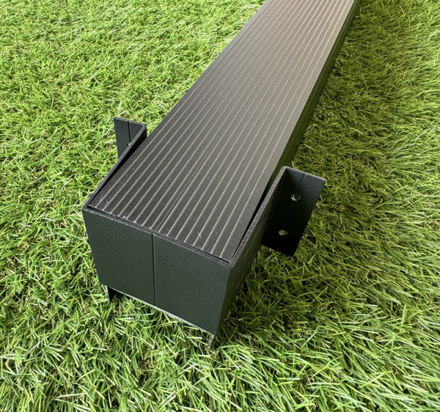 エコウッド人工木デッキ幕板用のアルミ下地金具です。 大引きに固定して人工木幕板の下地材としてご使用いただくことができます。