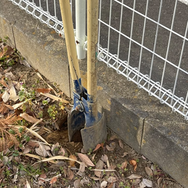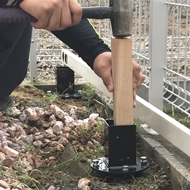 『土中用金具によるフェンス設置は、初心者の方でも比較的取り組みやすい設置方法です。