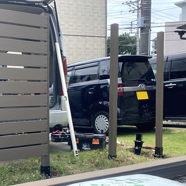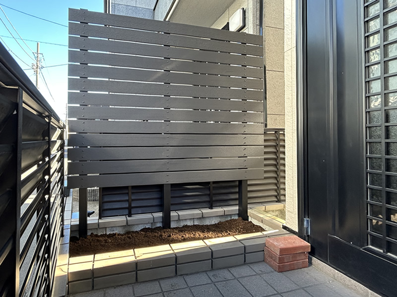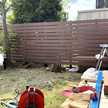 人工木フェンスが出来上がりました♪ こちらではお隣に家が建つとのことで、目隠し対策を施されました☆
