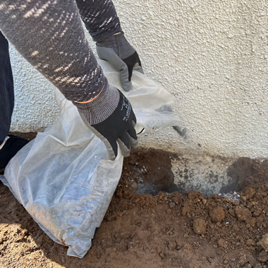 すべての板材を貼り終えた後は、基礎周りをモルタルでしっかりと固めていきます。