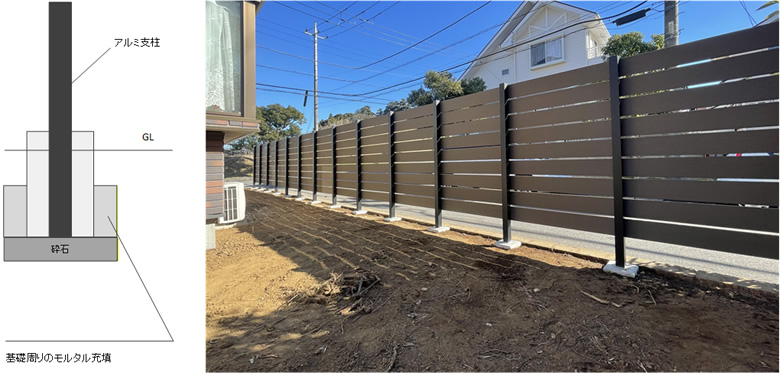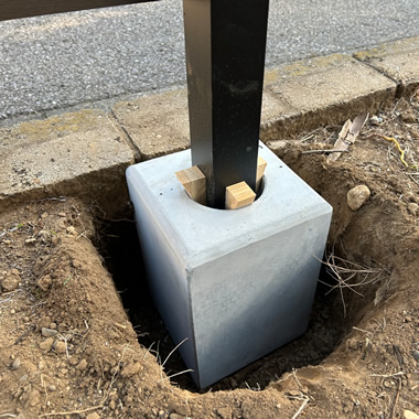 『独立基礎を使用したフェンスの設置は、強度が高く背の高いフェンスでも安定しやすい設置方法です。