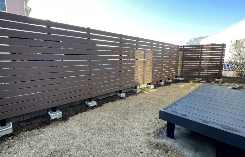 コンクリート上への人工木目隠しフェンスが完成です☆ 自然な風合いが特徴の人工木フェンスです♪