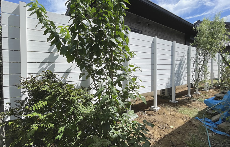 また、他の事例として、駐車場とお庭の仕切りとして設置した人工木フェンスをご紹介いたします。