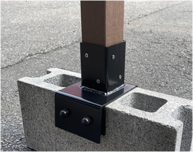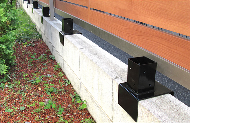 ブロックの上に設置するパターンとして、ブロック金具を使用した設置方法をご紹介いたします。