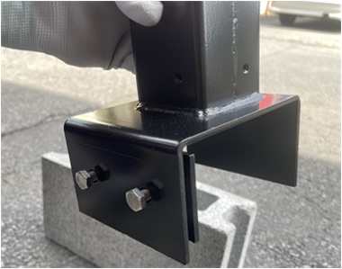 当店の金具は鉄板を厚めに製造しており十分な強度がありますが、地面に直接支柱を立てる方法と比べると強度はやや控えめになります。