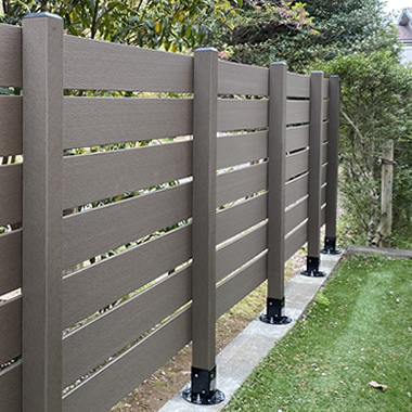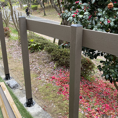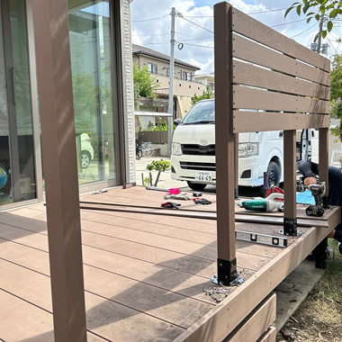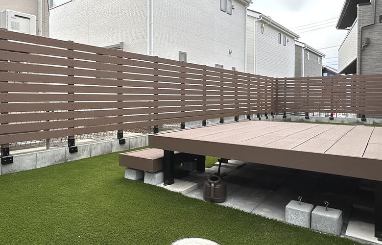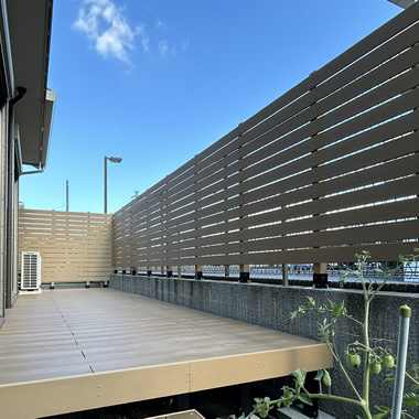 → 既存ウッドデッキ上に設置した人工木ボーダーフェンス(ブラウン色)