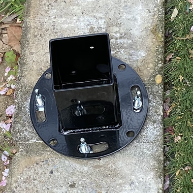 『コンクリート上に支柱を立ち上げて設置できる便利な金具です。