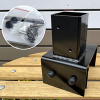 ビスを打ち込みます。ビス穴は計8箇所ありますが、裏側のビスが打てない環境の場合は、先に支柱をビス止めしてから金具を固定します。