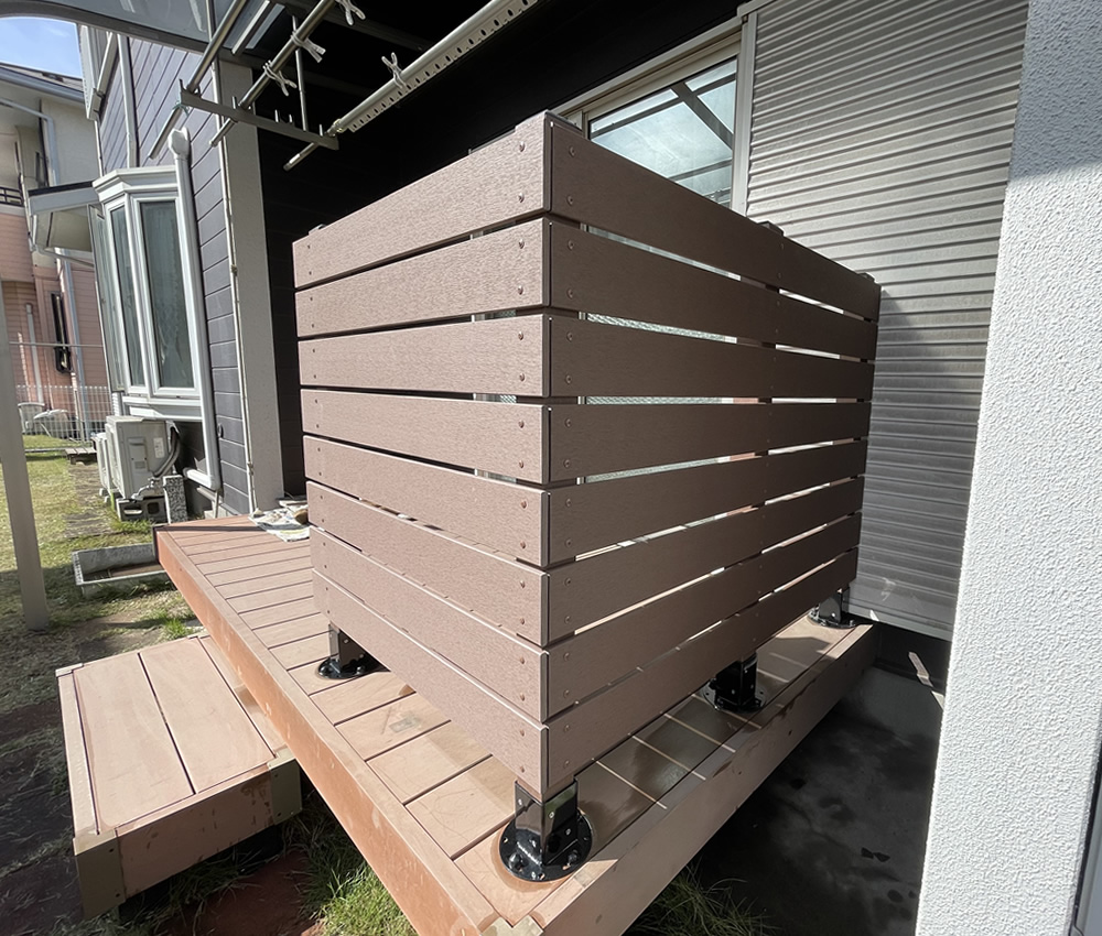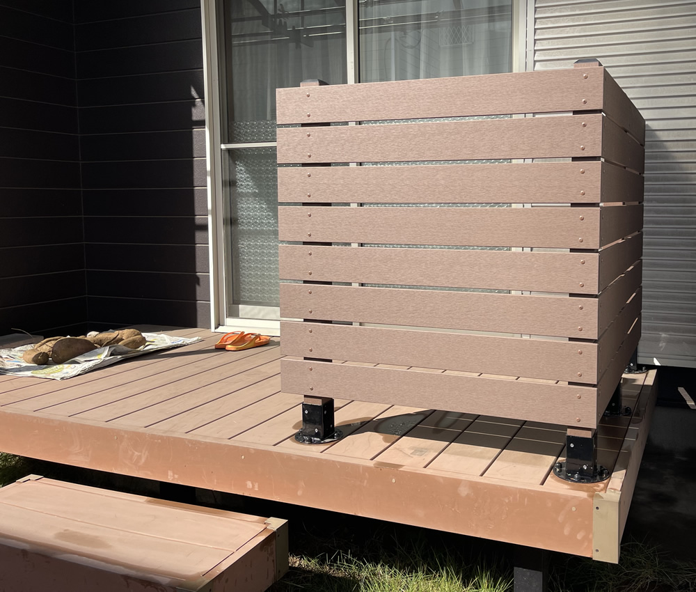 千葉県にお住まいのY様宅にて、既存デッキ上に人工木フェンスを設置させていただきました。