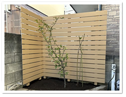 東京都にお住まいのT様宅にて、天然木ラティスから人工木フェンスにお取り替えさせていただきました。