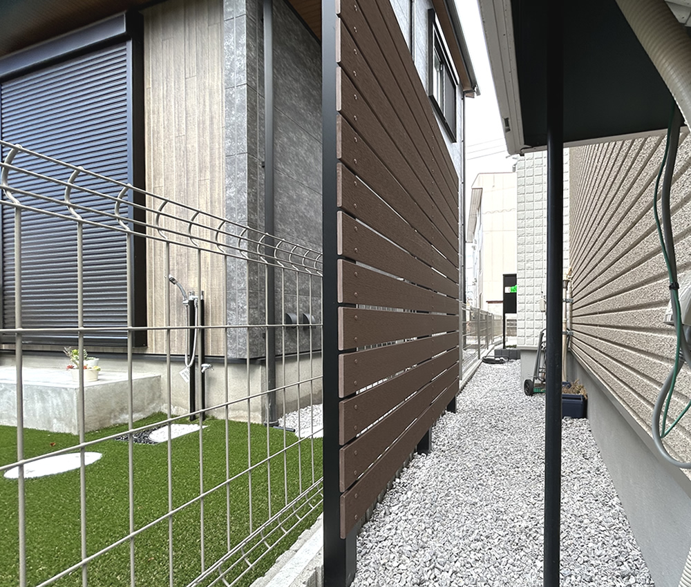 神奈川県にお住まいのO様宅にて、人工木目隠しフェンスを設置させていただきました。