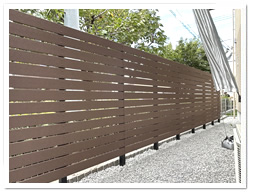 ↓『こちらではブラウン色の人工木フェンスをご採用いただきました。